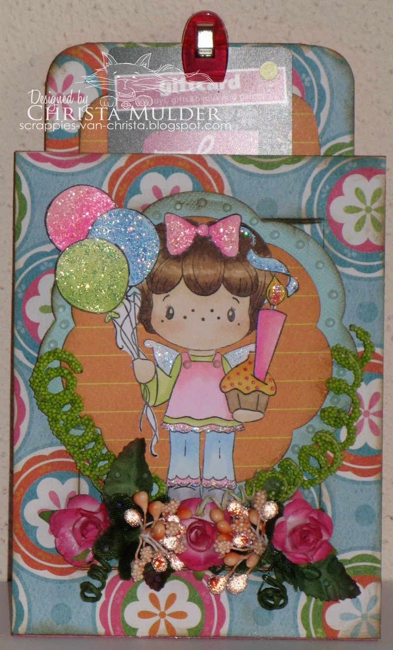 ik heb dit slidekaartje gemaakt voor het dochtertje van Martine( madeliefjuh) Elisa is afgelopen zaterdag 5 jaar geworden en wilde een echt meiden kaart sturen lekker vrolijk en fleurig.
