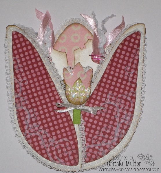 Vandaag begint de nieuwe challenge op Cards etc challenge blog , voor een donatie van 1euro krijg je deze patroon ,Ik heb als voorbeeld deze tulp gemaakt, mijn moeder was 10maart jarig dus het werd een verjaardagskaartje.